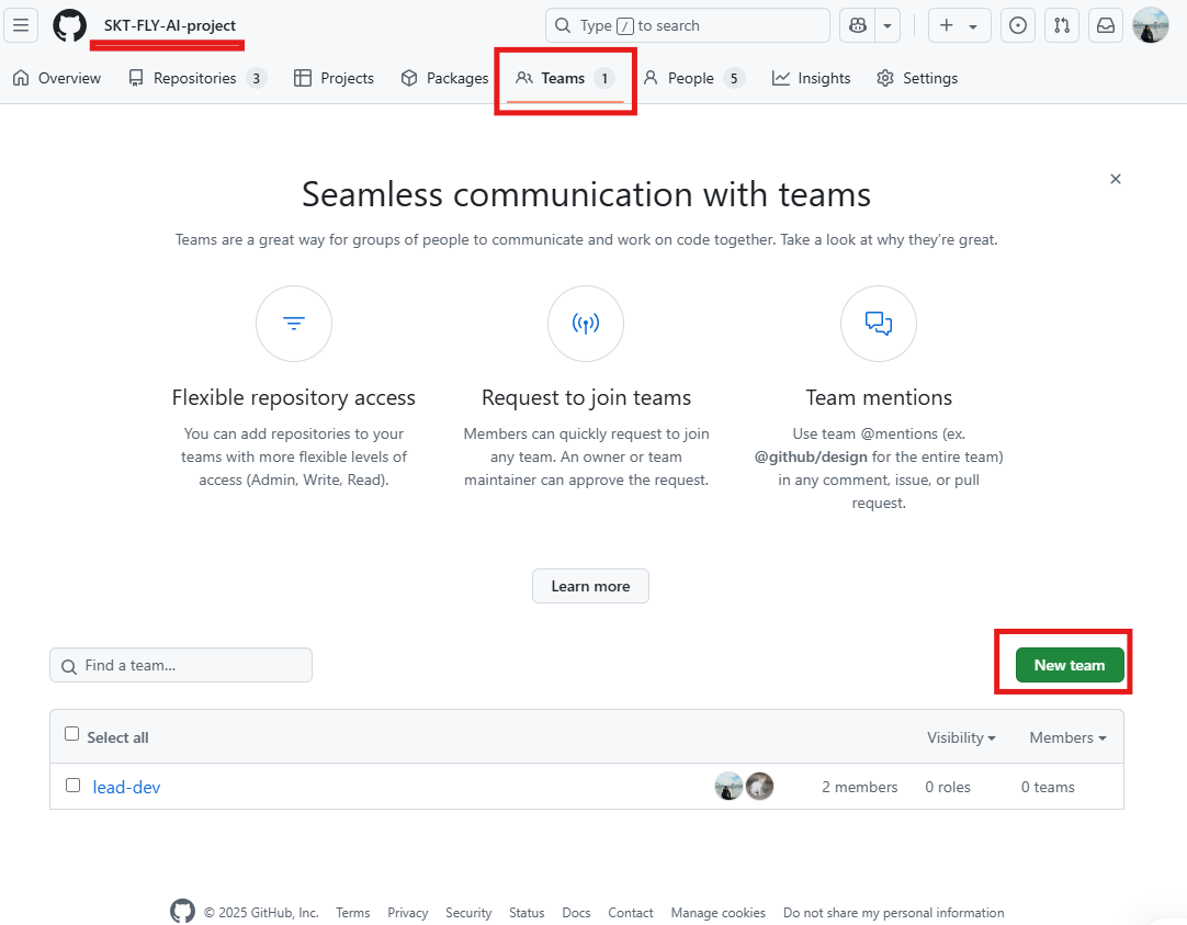 먼저, Team 만들기.