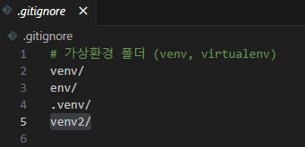 새로 만든 가상환경이 git에 올라가지 않도록 설정해주자.