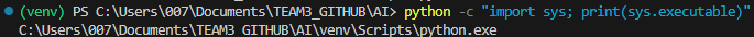 👉 정상적이지 않은 경우: 만약 다른 경로(예: C:\Python39\python.exe 등)가 출력된다면, 현재 Python이 시스템 Python을 사용하고 있는 것입니다.