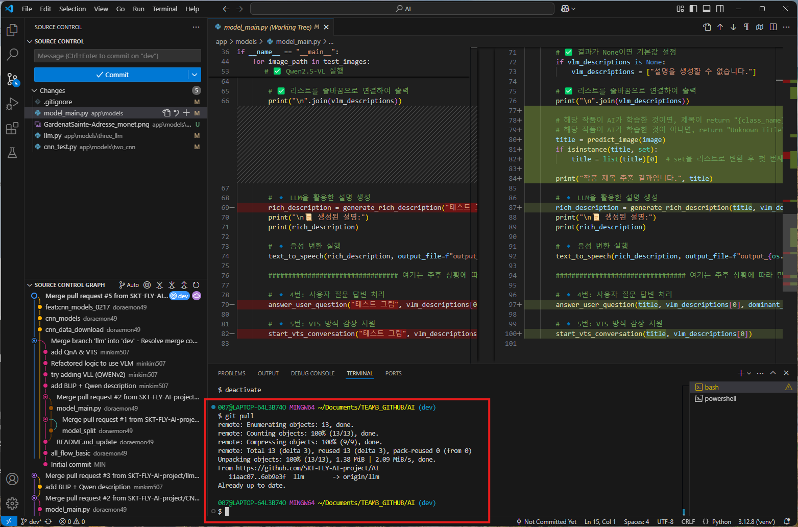 - (선택) 추가로 git pull origin dev 해서 최신 상태 반영