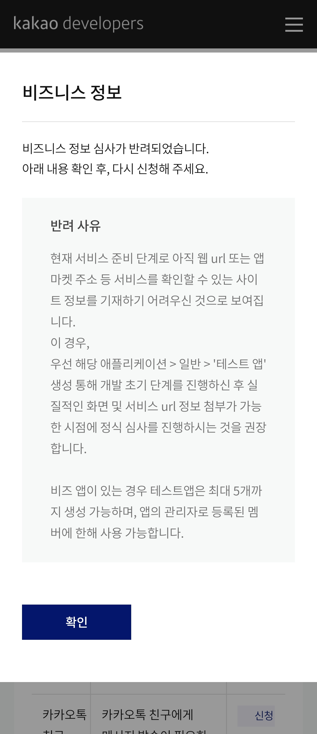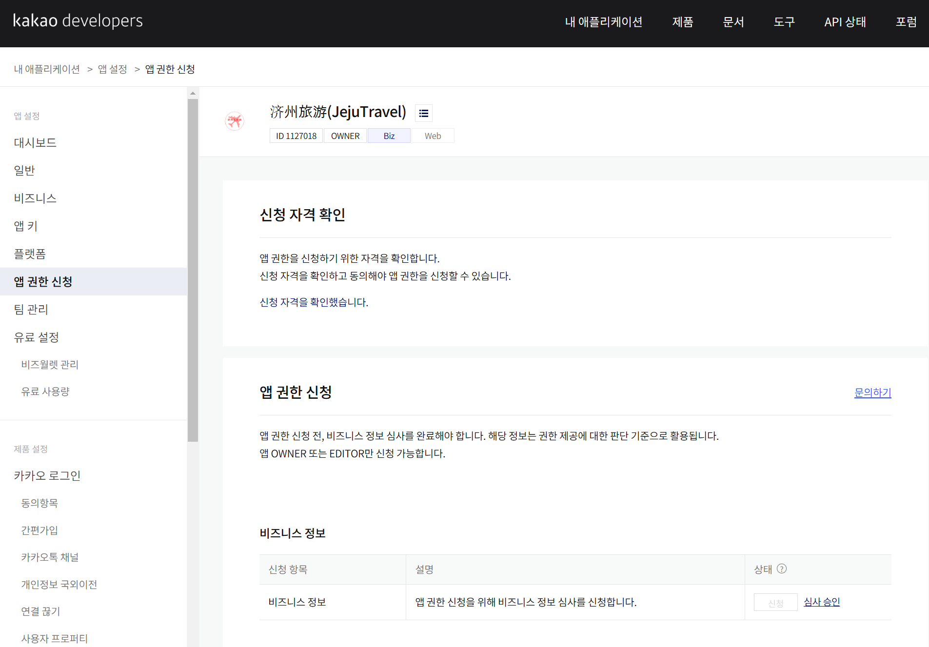 kakao developers를 통해 비즈니스 정보 심사 받자.