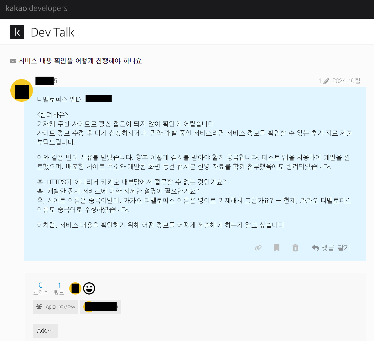 근데 답글로 정상 접근이 된다하셔서 다시 심사 요청을 보냈다~