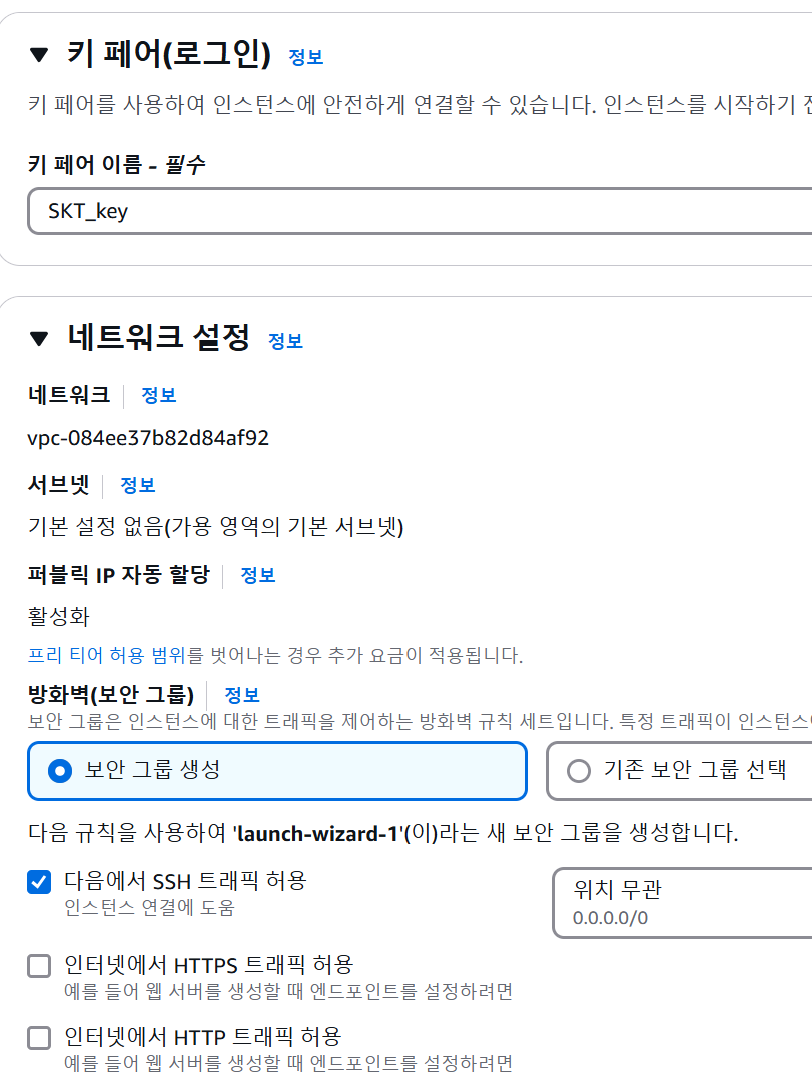 - 보안 그룹에서 포트 22 (SSH), 8000 (웹 서버용) 허용
