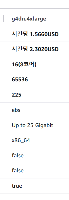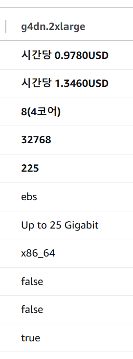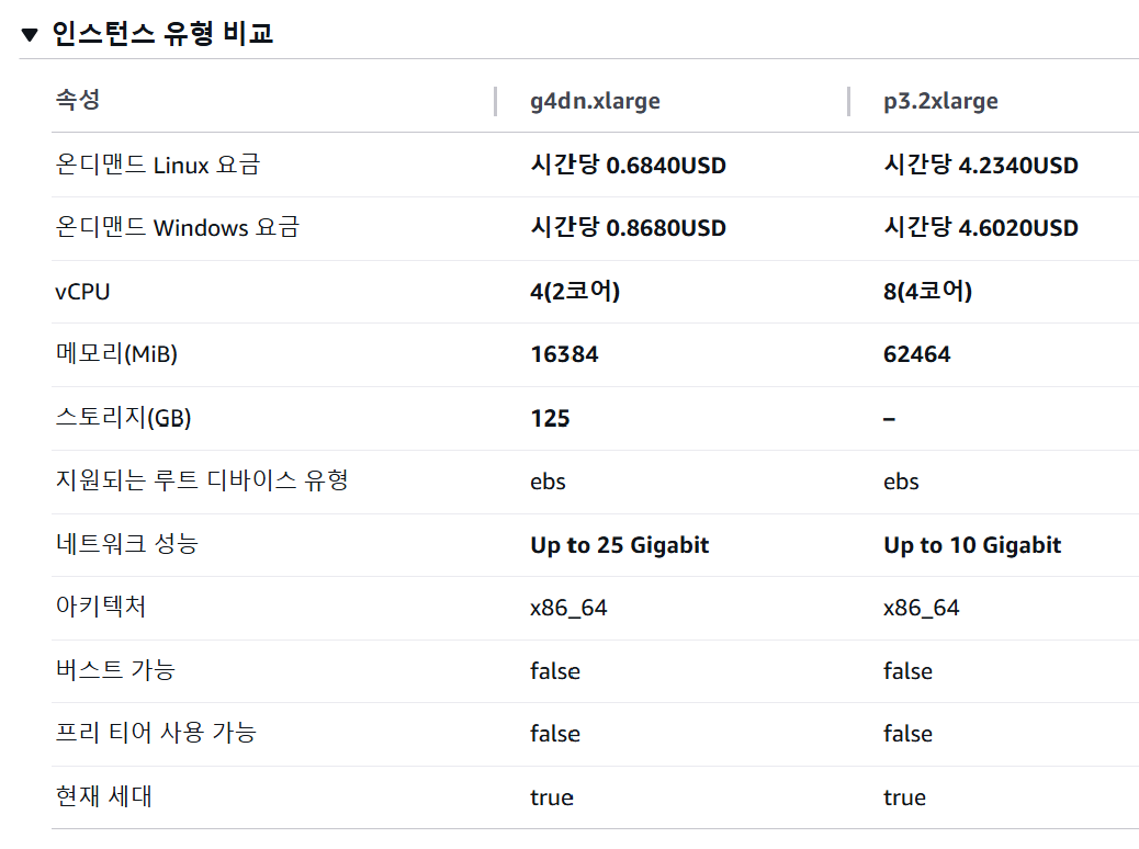 + ) GPU를 지원하는 모델은 vCPU가 2개 이상 필요하다.