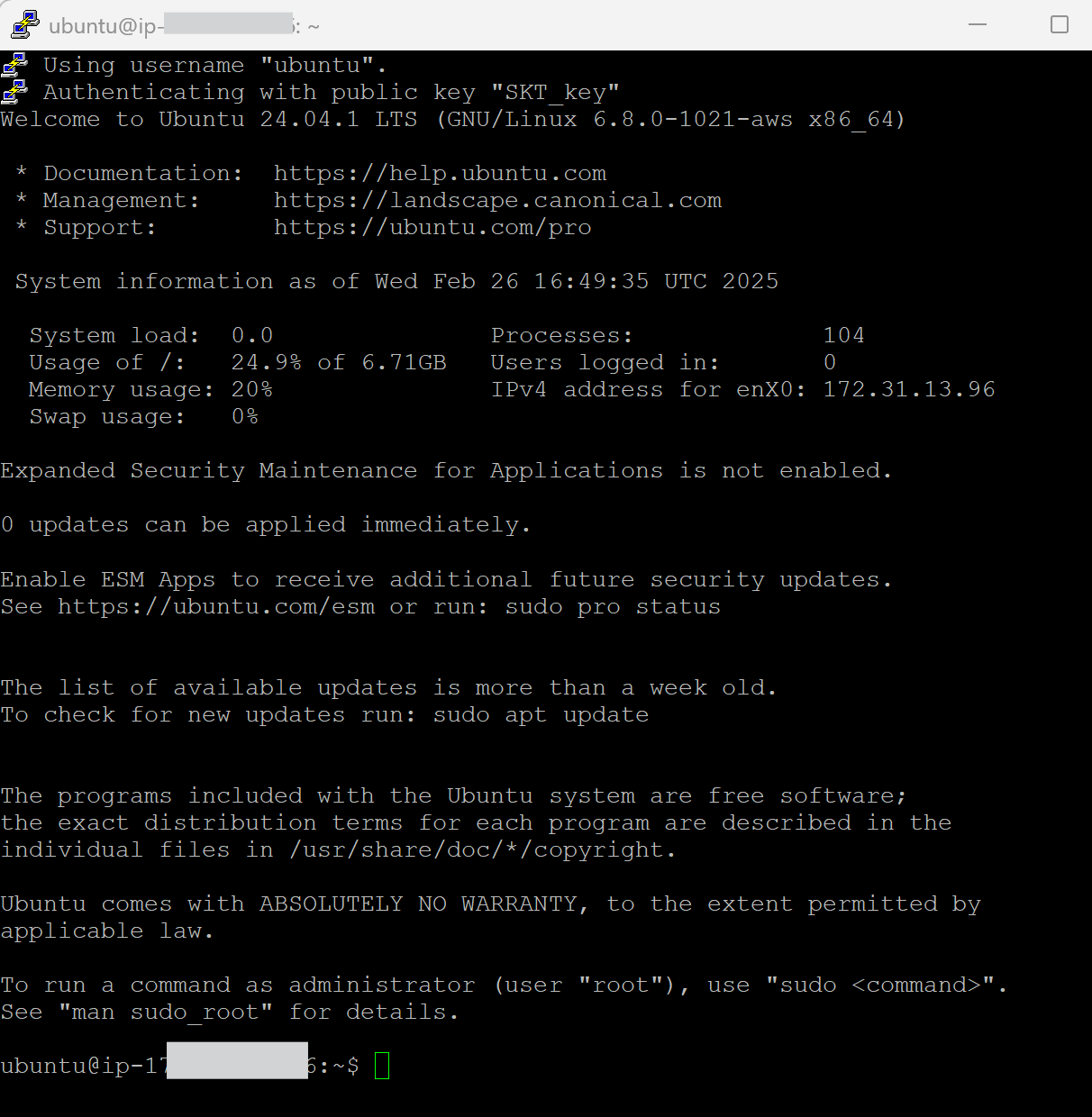 'ubuntu@퍼블릭ip주소' 입력 후