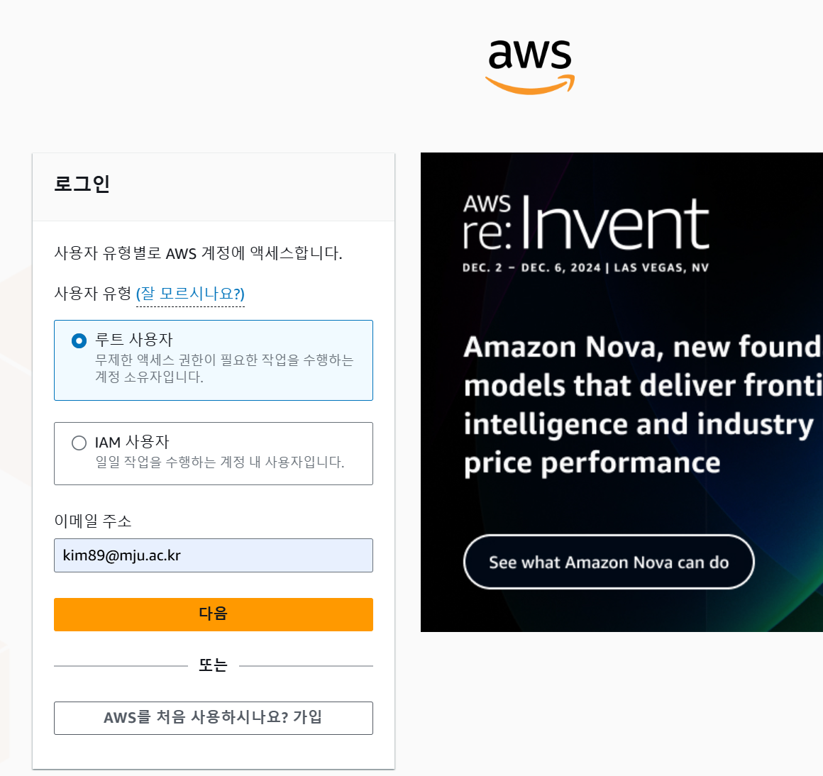 0. AWS 회원가입 및 로그인