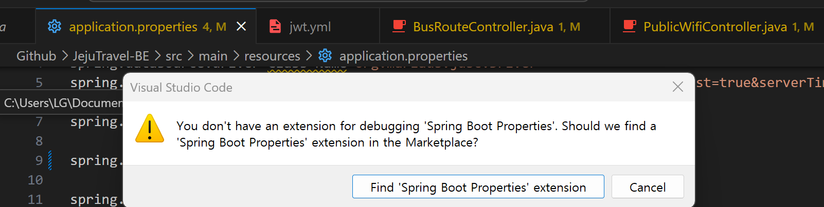 You don't have an extension for debugging 'Spring Boot Properties'. Should we find a 'Spring Boot Properties' extension in the Marketplace?