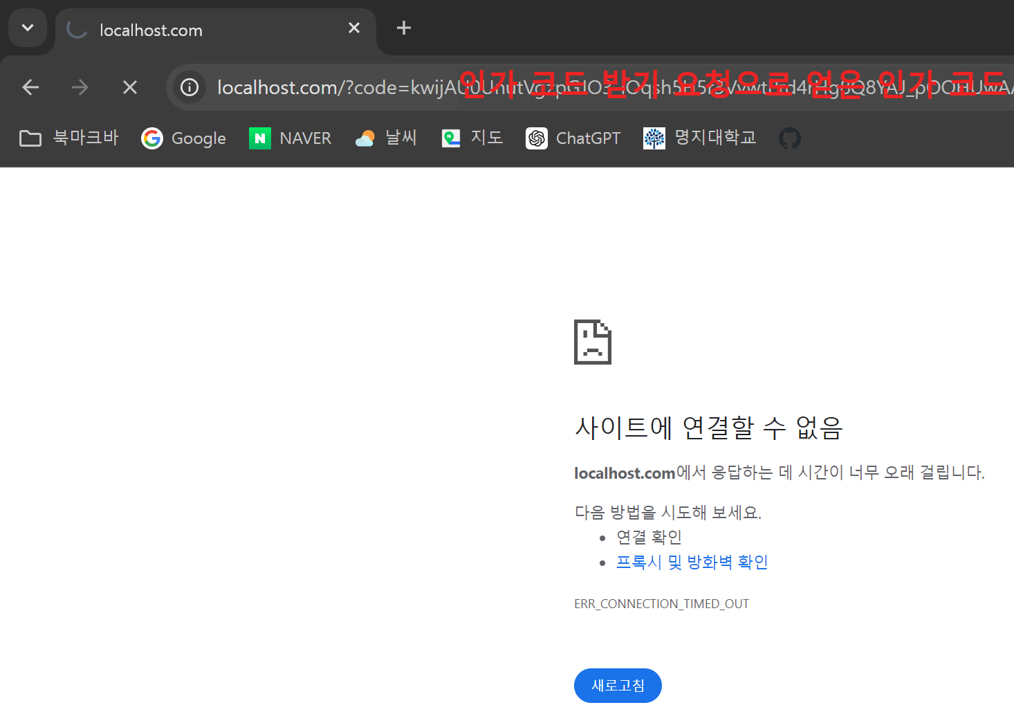- '동의하고 계속하기' 클릭 후, 상단 uri에서 인가 코드 얻기