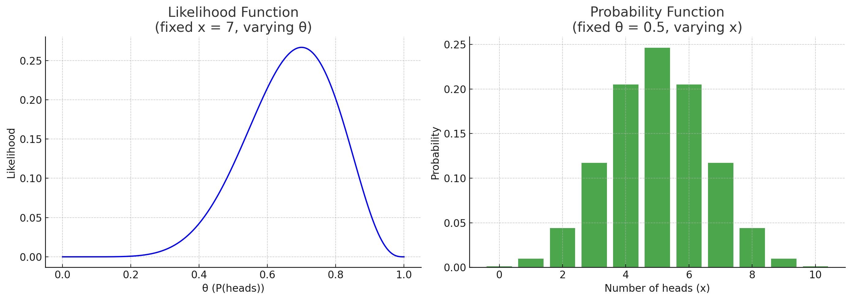 확률 함수는: "이 모수로 이 결과가 나올 확률은 얼마나 될까?"