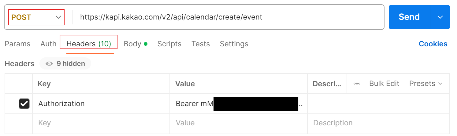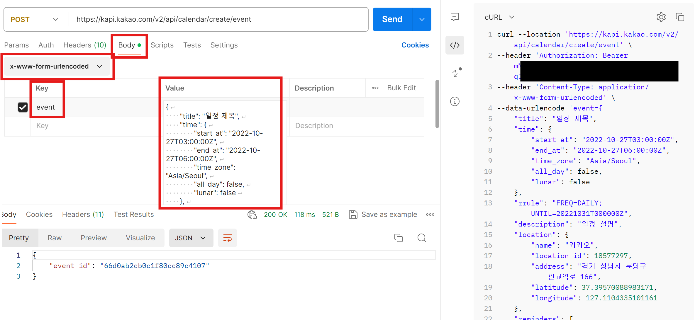 공식 문서 참조 : https://developers.kakao.com/docs/latest/ko/talkcalendar/rest-api#common-event-create
