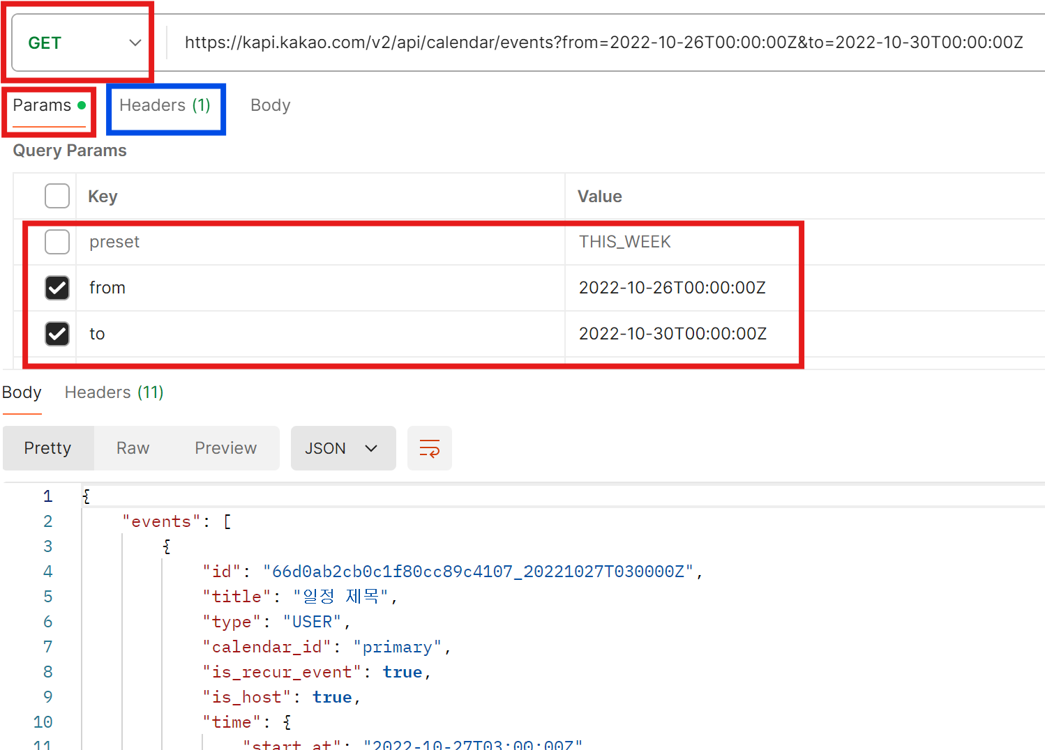 공식 문서 참조 : https://developers.kakao.com/docs/latest/ko/talkcalendar/rest-api#common-event-get-list