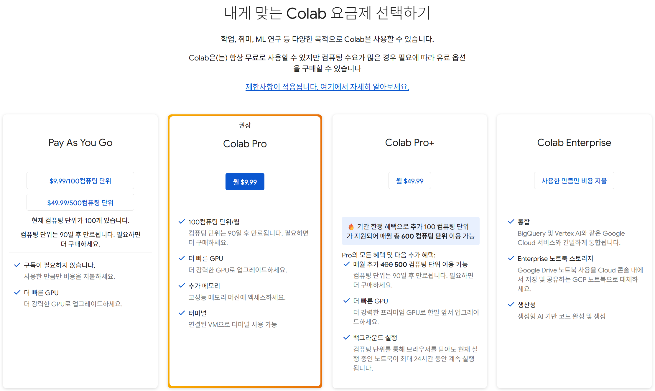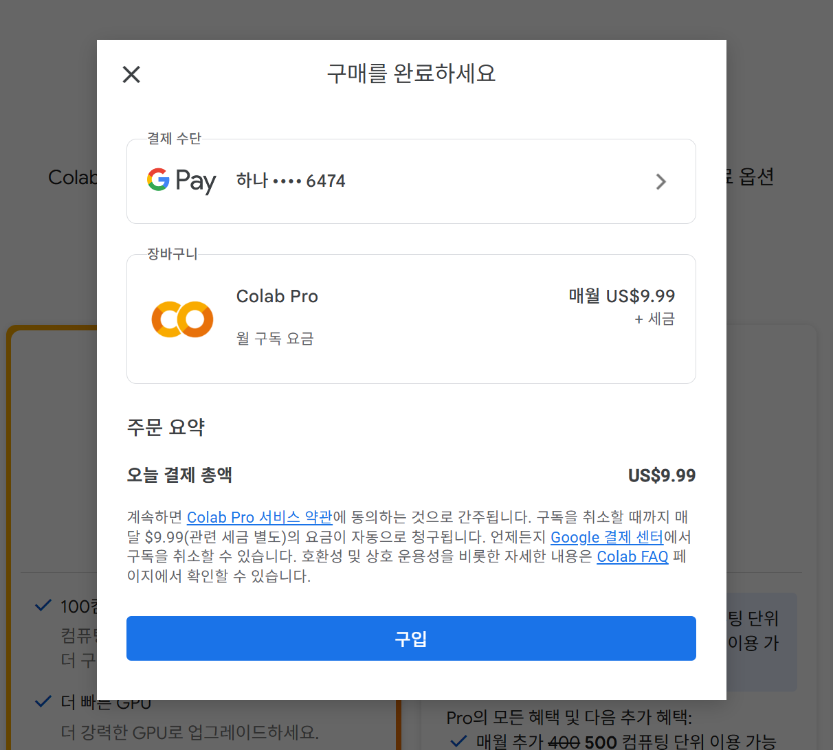 Colab 유료 서비스 가격 책정