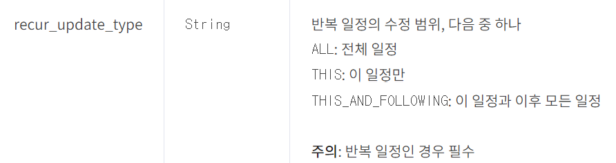 반복 일정의 경우, recur_update_type은 필수로 작성해줘야 한다.