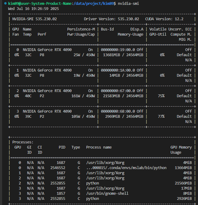 👉 현재 설치된 PyTorch 버전이 RTX 4090 GPU를 지원하지 않아서 발생한 에러입니다. 경고에서도 이미 말해주고 있죠: