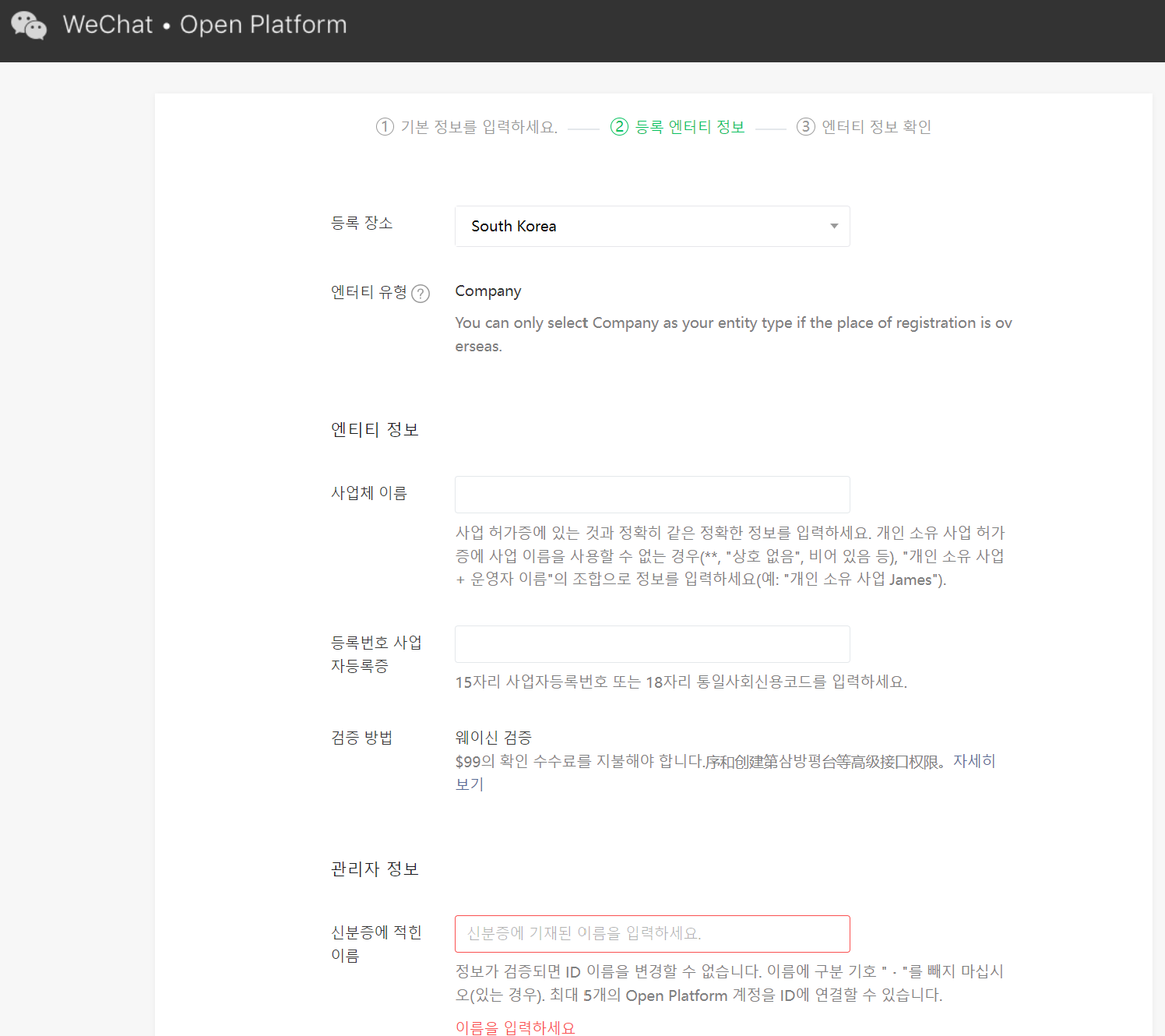 위챗 로그인 api를 이용하기 위해, 위챗 오픈 플렛폼에 가입하려 했는데...