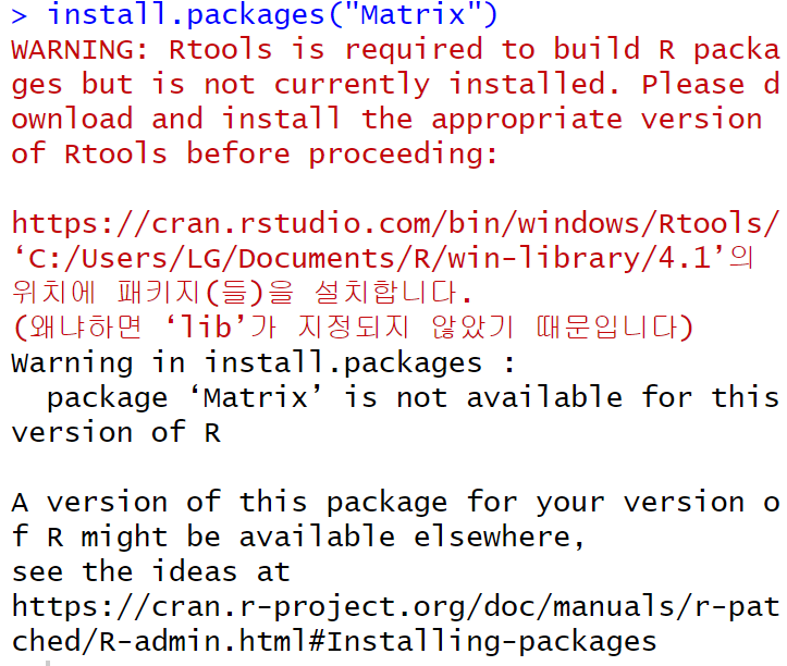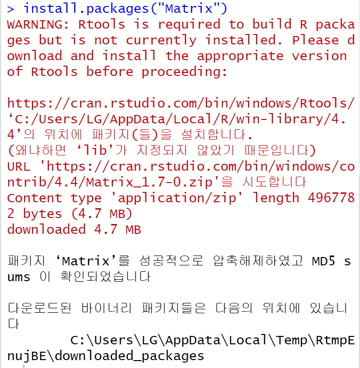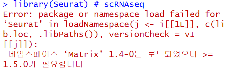 네임스페이스 ‘Matrix’ 1.4-0는 로드되었으나 >= 1.5.0가 필요합니다