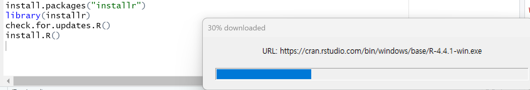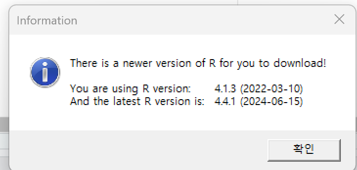 check.for.updates.R() # 알림창을 통해, 버전 확인 가능. # 최신 버전이면 FALSE # 업데이트해야 하면 TRUE