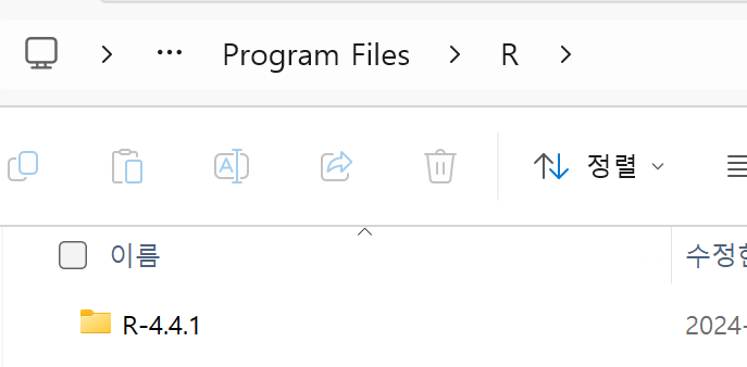'R-4.4.1' 폴더만 남겨두고 다시 R studio 실행하니 잘 됐다!