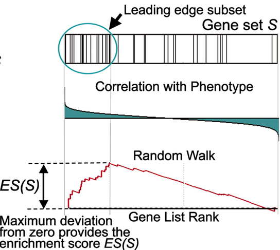 •The goal of Gene Set Enrichment Analysis(GSEA) is to determine whether members of a gene set S tend to occur toward the top (or bottom) of the list L, in which case the gene set is correlated with the phenotypic class distinction.