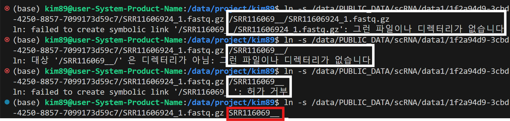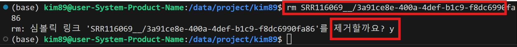 +) 현재 내 디렉토리 (파란색 부분인 /data/project/kim89) 에 존재하는 폴더 명(ex.SRR116069__)을 입력해주면 된다.
