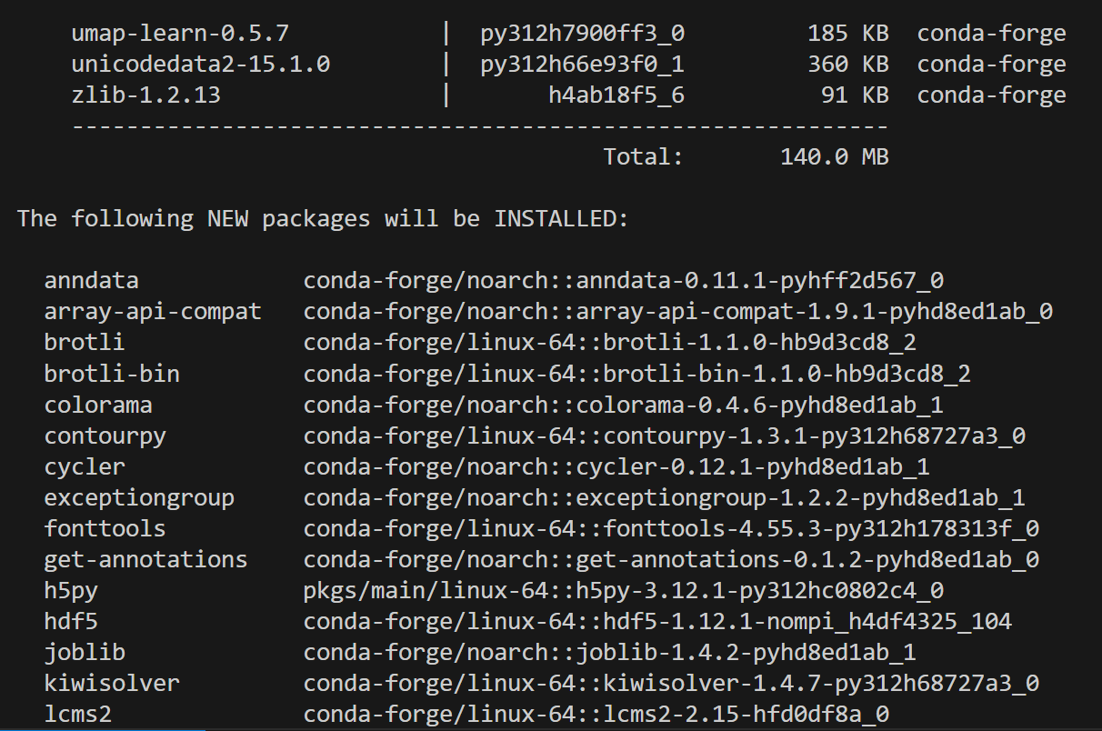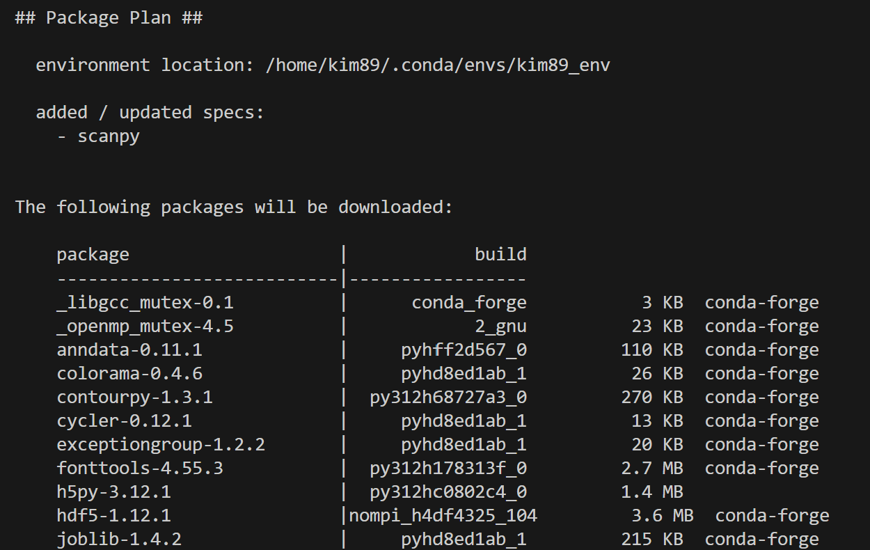 터미널에서, conda를 사용하여, Scanpy 패키지 설치