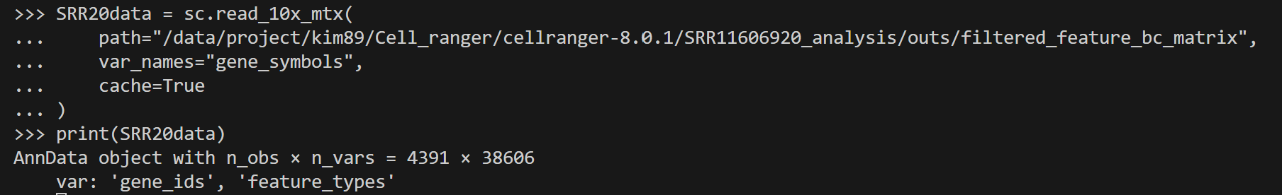 "/data/project/kim89/Cell_ranger/cellranger-8.0.1/SRR11606923_analysis/outs/filtered_feature_bc_matrix",
