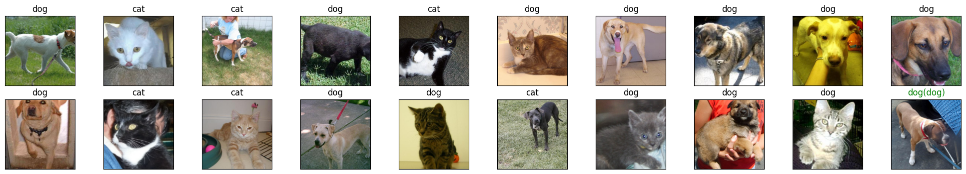 ax.set_title("{}({})".format(str(classes[preds[idx].item()]), str(classes[labels[idx].item()])), color=("green" if preds[idx]==labels[idx] else "red"))